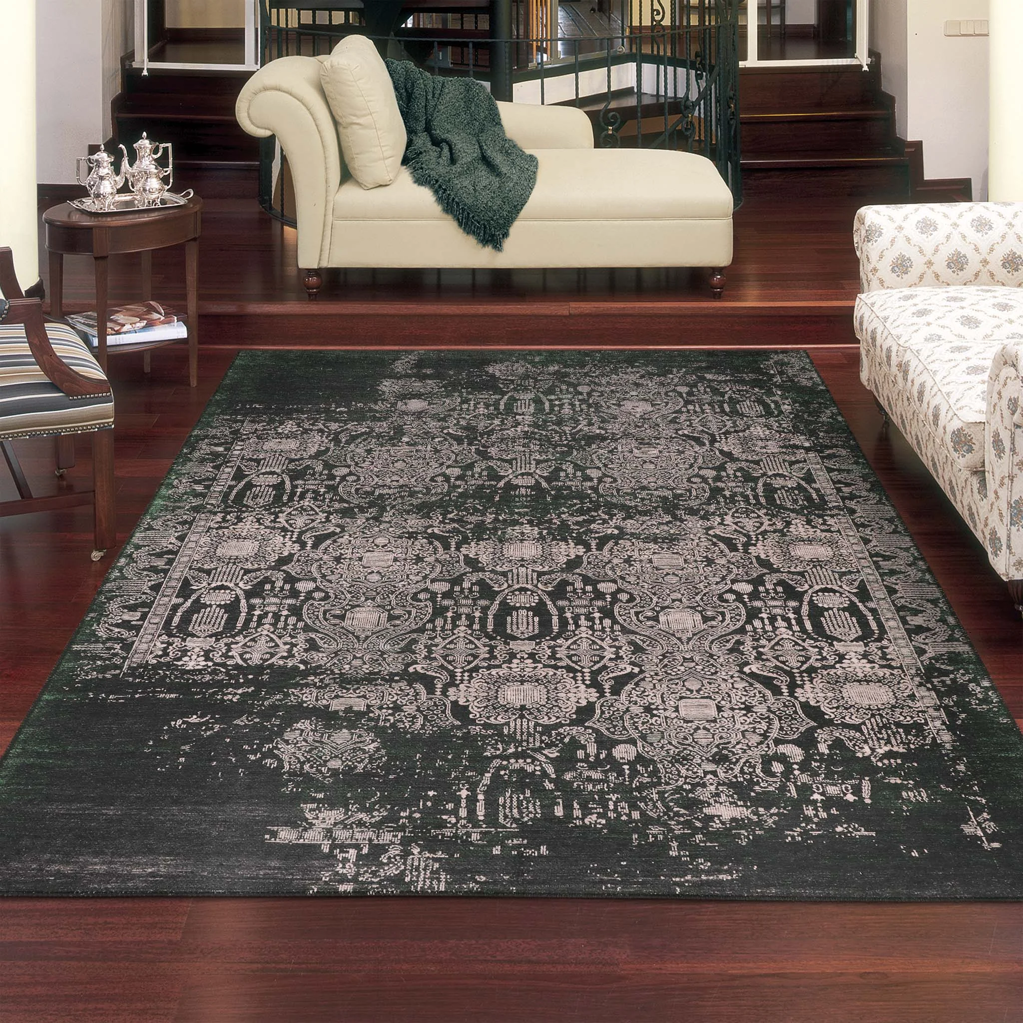This exquisite collection recreates the spirit of well-worn antique textiles of the classic orient with its distressed traditional patterns and unusual designs, and suits contemporary interiors surprisingly well. These raw but stylish patterns are printed on durable machine-woven polyester chenille with a recycled cotton back, and finished with intricate blanket-stitching. These highly fashionable rugs are made in Turkey, utilizing the latest advances of modern technology. *Please allow up to -5% size variance due to possible post-production shrinkage of the recycled materials used in these rugs.